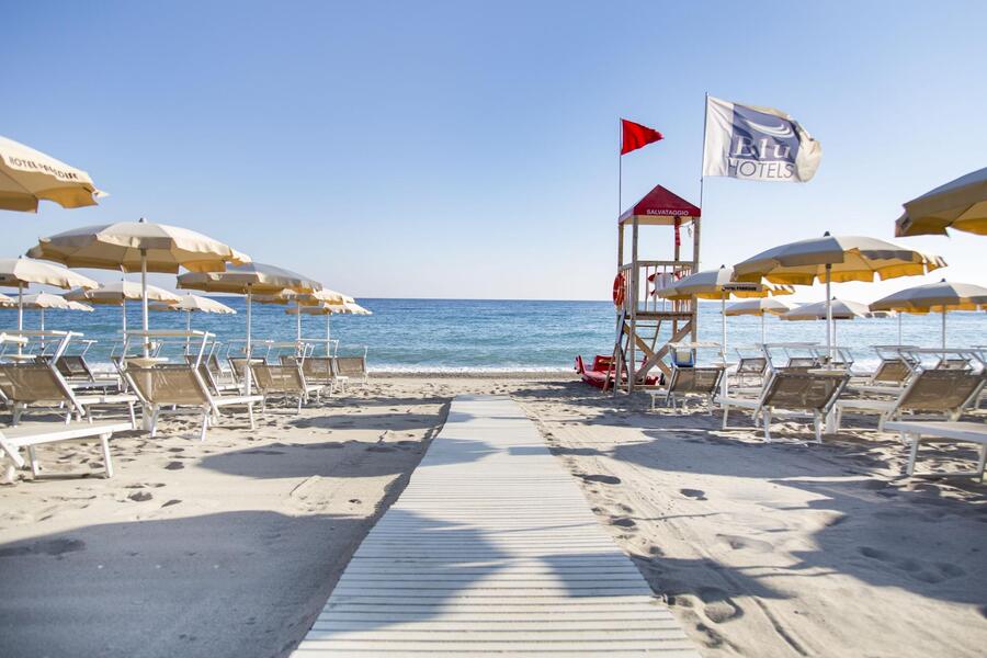 L'hotel dispone inoltre di una spiaggia privata che prevede i seguenti costi per un ombrellone e due lettini: