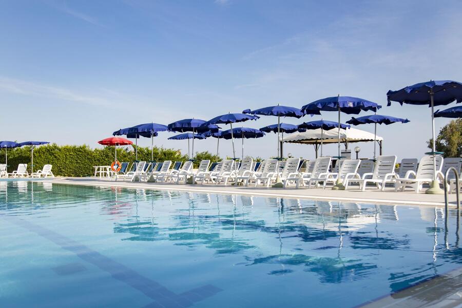 A completa disposizione degli ospiti la piscina esterna attrezzata con lettini e ombrelloni, disponibili gratuitamente fino a esaurimento. Non è consentito l'utilizzo degli asciugamani delle camere e l'uso della cuffia è obbligatorio.
