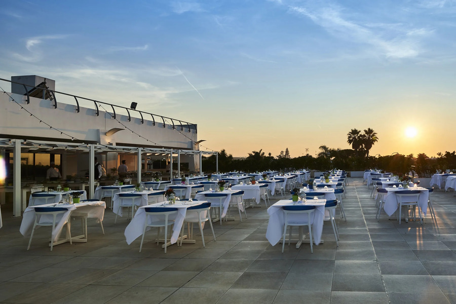 4 distinte sale ristorante, tutte con tavolo assegnato, e 2 ristoranti alternativi: Sala Rubino con Garden Square all’esterno nella piazza, Sala Argento, Sala Diamante e Sala Avorio; Ristorante “Il Pugliese” in terrazza con vista sul Resort, disponibile con cena su prenotazione, compreso nella quota di soggiorno (attivo dal 16/05 al 26/09), e il “Beach Restaurant” in spiaggia, disponibile solo a pranzo, su prenotazione, compreso nella quota di soggiorno (attivo dal 16/05 al 26/09). Nei periodi di bassa stagione (01/04-15/05 e 26/09-30/10), a discrezione della Direzione, il servizio a buffet potrebbe essere sostituito dal servizio al tavolo con menu di tre portate. Speciale celiaci: si mettono a disposizione i prodotti base (pane, pasta e biscotti e dessert a cena). Resort approvato AIC.