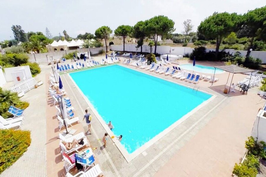 Si trova in posizione centrale, a 25 Km da Lecce e a 15 da Otranto. Si compone di camere doppio ambiente posizionate al piano terra o 1° piano e di camere mono-ambiente ubicate solo al piano terra, un ricevimento aperto 24/24 ore, una zona sportiva con piscine, campo di calcetto, tennis, bocce, pallavolo, basket e l’anfiteatro, il tutto inserito in un bel contesto di vialetti, giardini e fresca pineta. A 800 m si trova la spiaggia di Torre dell’Orso da anni premiata con Bandiera Blu e il nostro lido privato “I Caraibi del Salento”, posizionato di fronte agli splendidi faraglioni Le Due Sorelle, i cui servizi sono prenotabili (previa disponibilità- posti ad esaurimento) e convenzionati. E’ raggiungibile a piedi o, ad orari prestabiliti, con la navetta inclusa nella tessera club. Il nostro stabilimento è accessibile a portatori di handicap, essendo munito di sedia job. In spiaggia è disponibile bar, tavola calda e pizzeria (a pagamento)